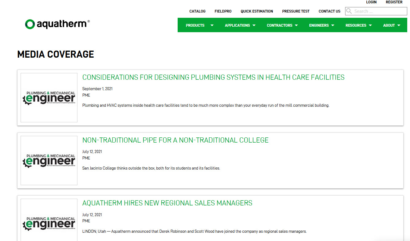 In the VP of Marketing role, I directed internal and external resources in the complete reformatting and redesign of the Aquatherm North America site. The new version offered huge increases in UI, SEO results, and targeted traffic, among other things.