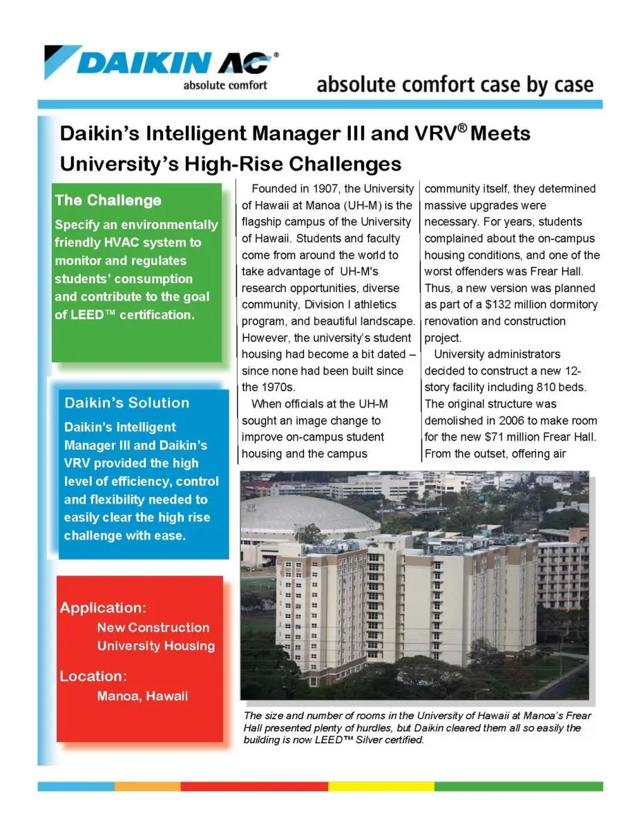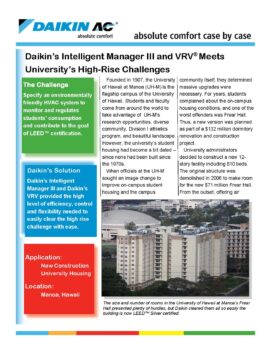 - U of H for Daikin Article details the installation of a Daikin HVAC system at the University of Hawaii at Manoa View PDF