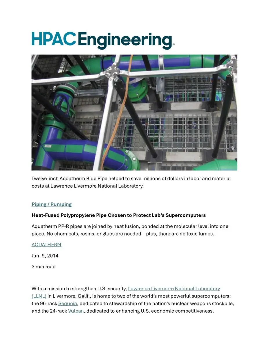 - LLNL for Aquatherm This piece was published in magazine, used as advertorial content and published on a company website. Read Web Article View PDF